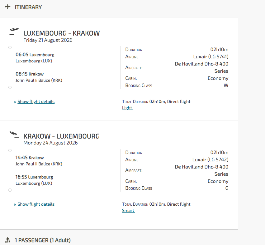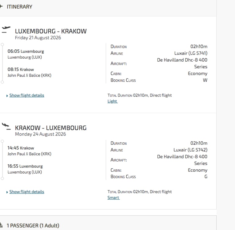 Linie lotnicze: Lufthansa, LOT, Ryanair, Luxair (loty z przesiadką we Frankfurcie, Monachium lub Warszawie)Przylatujesz z Luksemburga? Jest bezpośredni lot do Krakowa Luxairem, wylot w piątek rano 21.08, a powrót w poniedziałek popołudniu 24.08.