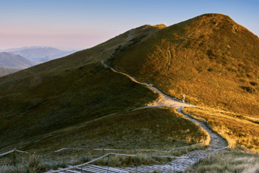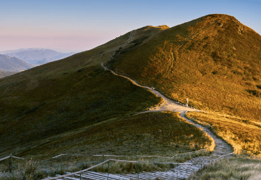 Połoniny Wetlińska i Caryńska — wizytówka regionu: łagodne trasy, morze traw i wiatru.