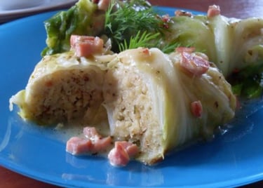 Gołąbki, szczególnie z ziemniakami – tradycyjne liście kapusty faszerowane ziemniakami i czasem kaszą gryczaną.