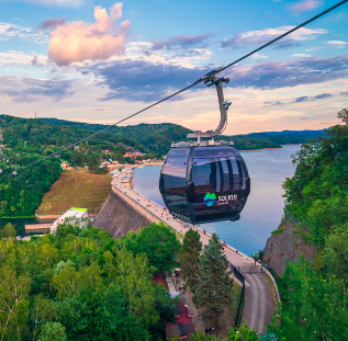 Jezioro Solińskie Malowniczy akwen otoczony zielonymi wzgórzami Bieszczad, Jezioro Solińskie, to idealne miejsce na relaks, rejsy i sporty wodne. Nad jeziorem znajduje się również zapora, którą można zwiedzać. Warto też skorzystać z kolejki linowej w Solinie, która w kilka minut wwozi na górę Jawor, skąd rozciąga się przepiękna panorama jeziora i okolicznych gór. Bilety dostępne są online lub na miejscu, a na szczycie można zatrzymać się w polecanej przez nas karczmie „Jawor”. https://www.pkl.pl/solina/solina.html
